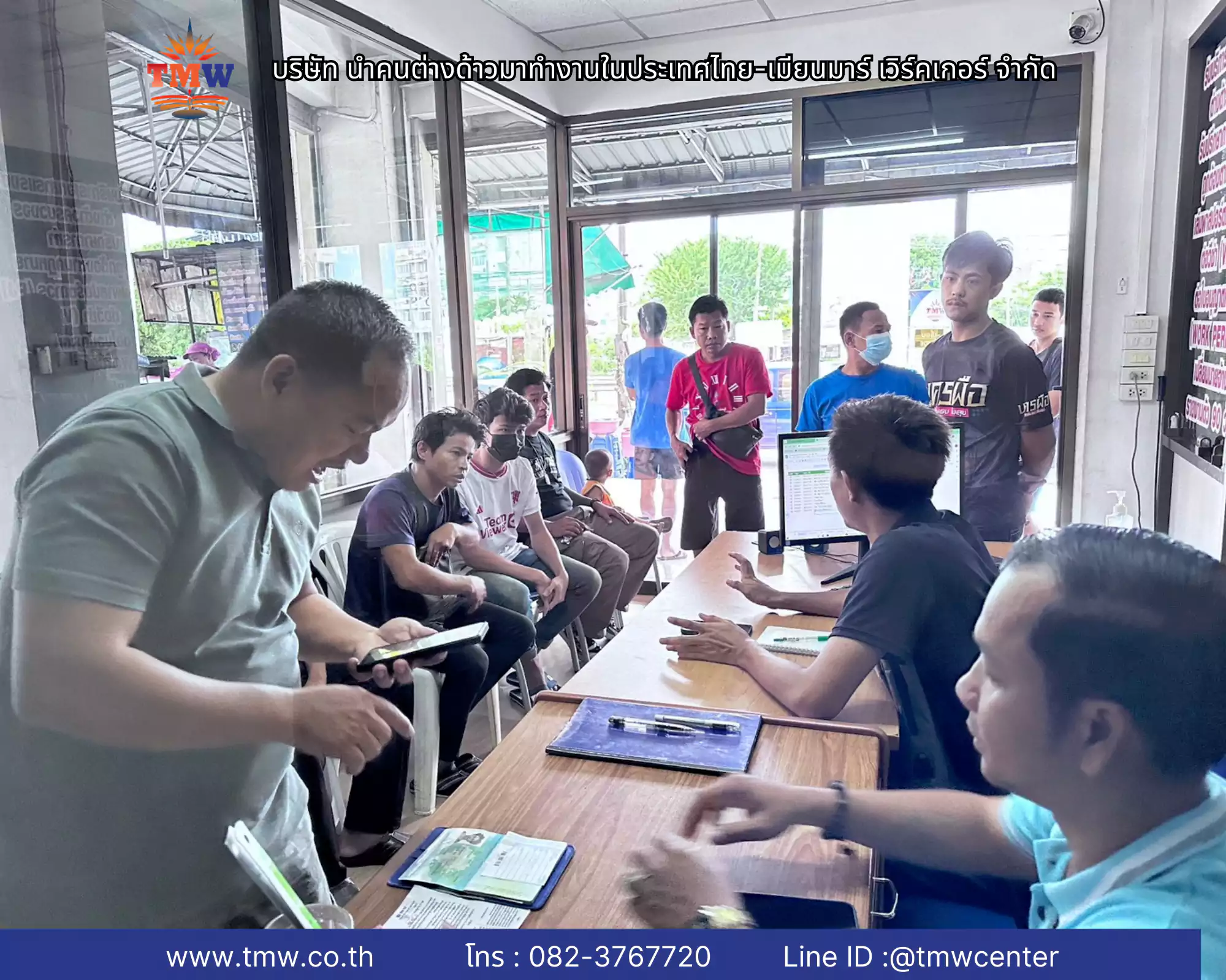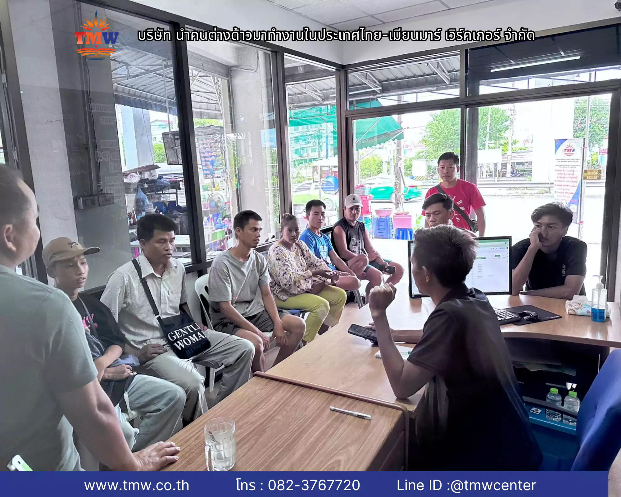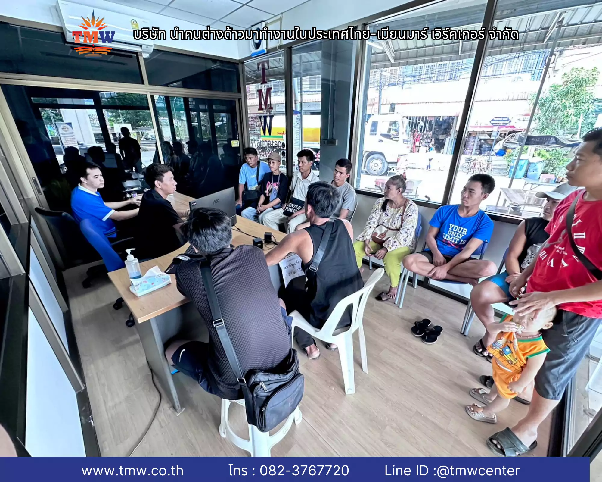 นายจ้างมาสัมภาษณ์แรงงานต่างด้าวที่บริษัทนำคนต่างด้าวมาทำงานในประเทศไทย-เนียนมาร์ เวิร์คเกอร์จำกัด เพื่อคัคแรงงานต่างด้าวที่มี ฝีมือเฉพาะด้านไปทำงานขึ้นโครงสร้างเสาสัญญาณโทรศัพท์วันที่ 24 มิถุนายน 25667