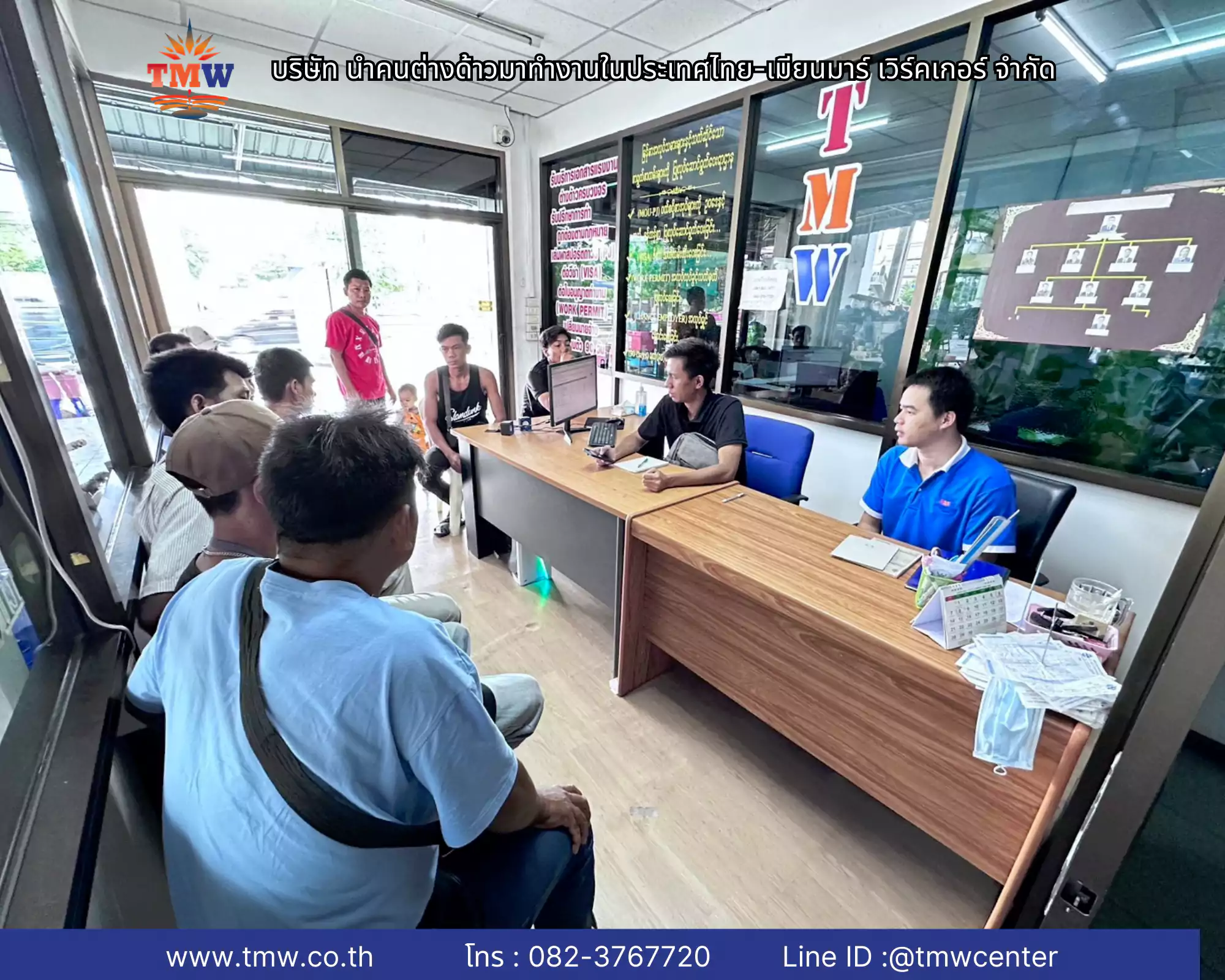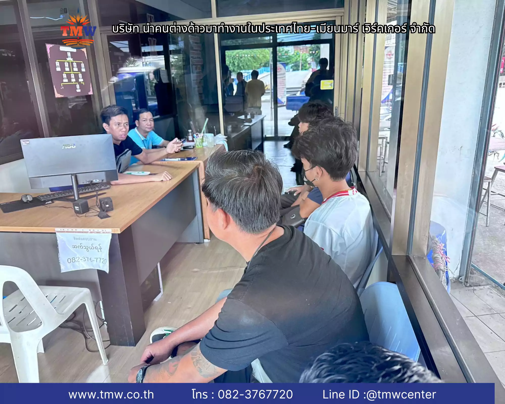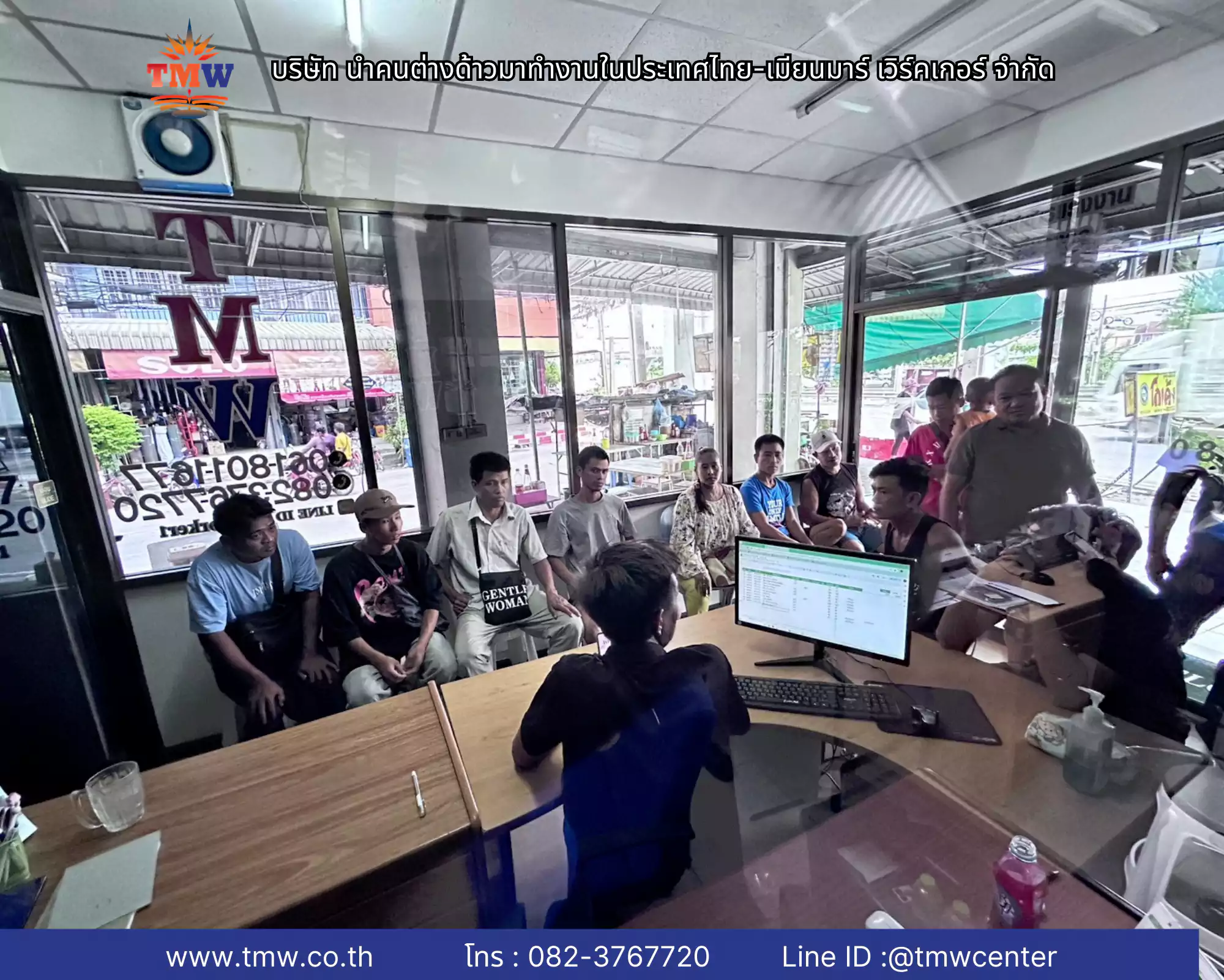 นายจ้างมาสัมภาษณ์แรงงานต่างด้าวที่บริษัทนำคนต่างด้าวมาทำงานในประเทศไทย-เนียนมาร์ เวิร์คเกอร์จำกัด เพื่อคัคแรงงานต่างด้าวที่มี ฝีมือเฉพาะด้านไปทำงานขึ้นโครงสร้างเสาสัญญาณโทรศัพท์วันที่ 24 มิถุนายน 25667